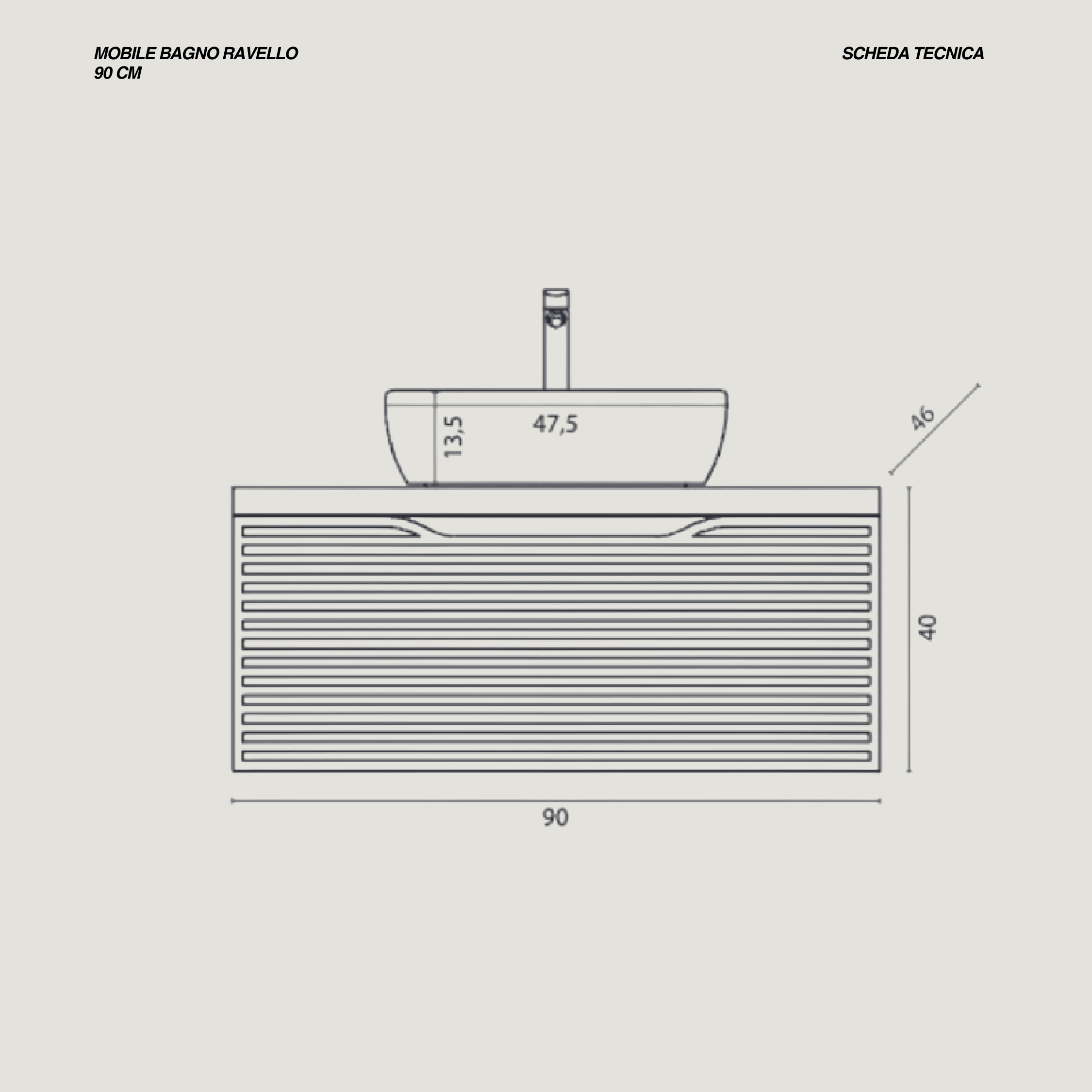 - Misure lavabo: L 47,5 x H 13,5 x P 46 (cm)