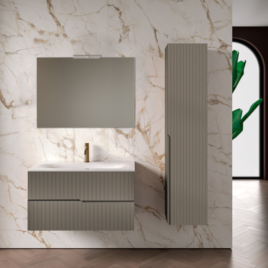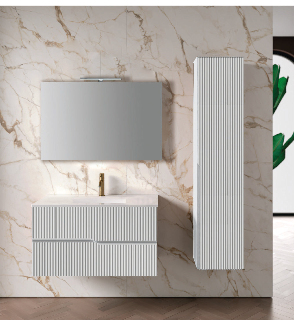 Il mobile bagno è completamente personalizzabile, offrendo la possibilità di adattarlo perfettamente ai gusti alle esigenze di ogni cliente; nei contenuti multimediali disponibili è possibile visualizzare tutte le colorazioni proposte per questa serie, così da scegliere con consapevolezza la finitura più adatta al proprio ambiente; qualora si desideri modificare la colorazione del lavabo sostituire lo specchio presente in foto con un modello differente, sia per quanto riguarda la misura che la forma, è sufficiente contattarci per ricevere un preventivo personalizzato scoprire tutte le opzioni disponibili per rendere unica la propria composizione bagno.