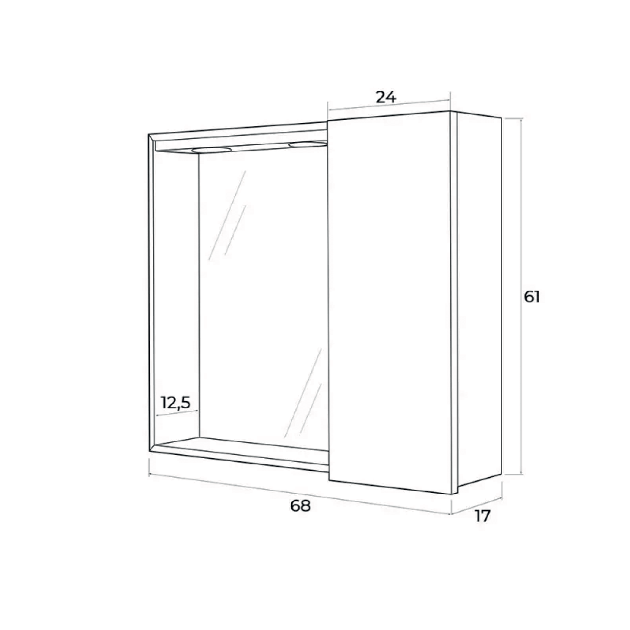 Specchio contenitore linea Mondo 2.0 con cassa in nobilitato rivestito in pvc colore bianco e anta in Nobilitato colore bianco laccato. Lo specchio è dotato di un'anta completa di illuminazione led e mensola interna in vetro.
