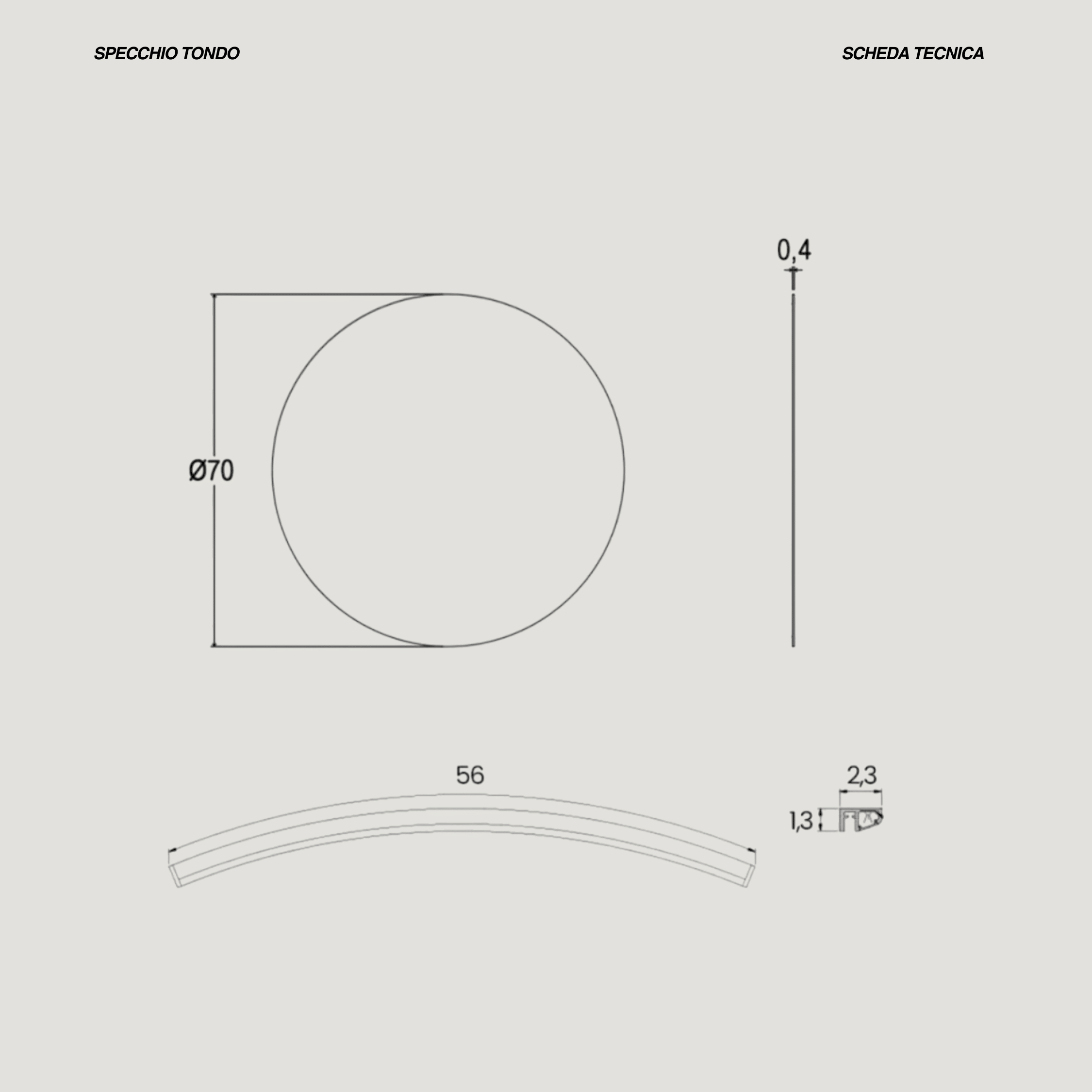 Specchio tondo con illuminazione led in ABS compreso di trasformatore. La misura dello specchio è di diametro 70 cm.