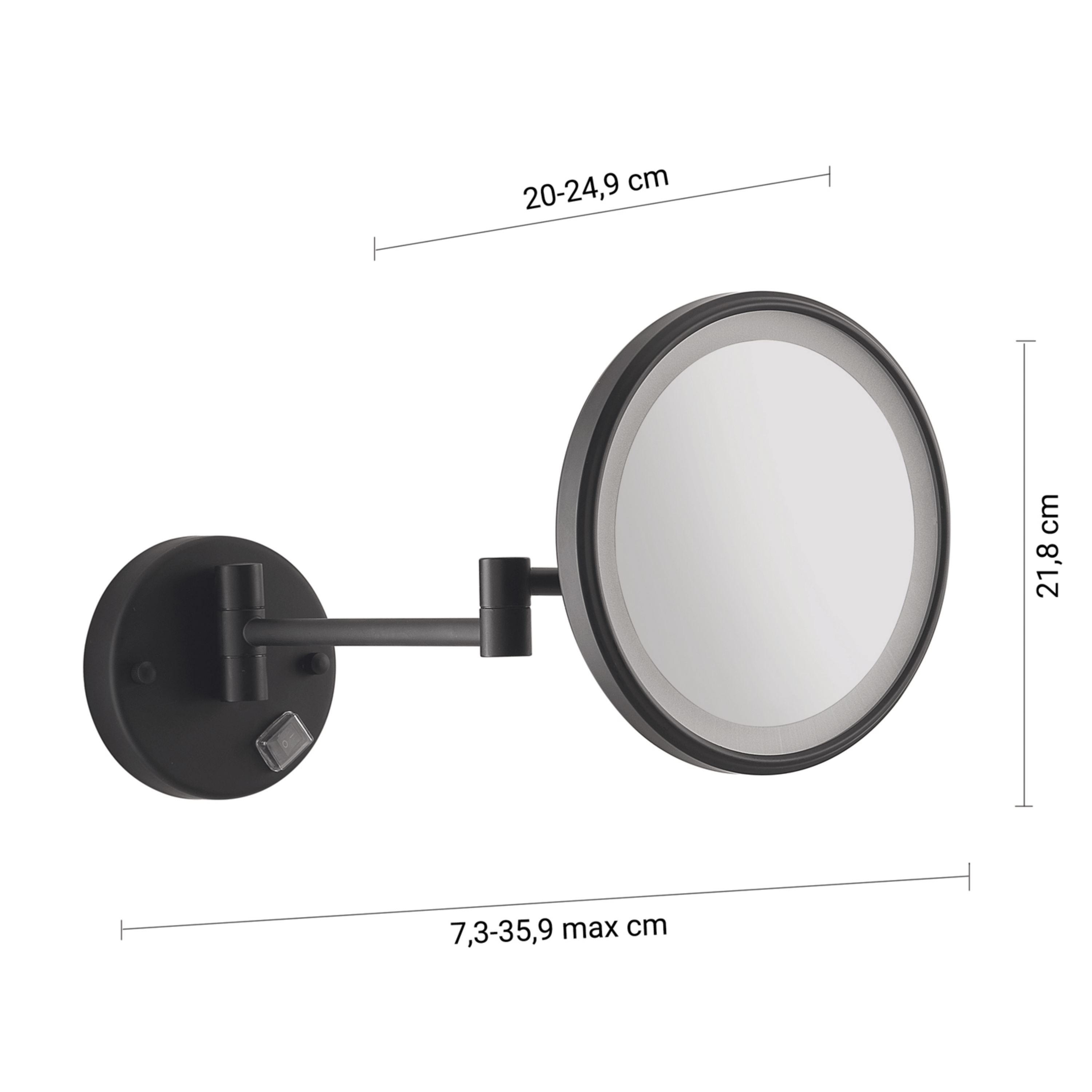 Specchio a Parete Estensibile Con Illuminazione Led e Ingrandimento 5x Gedy "Eva" Nero Opaco