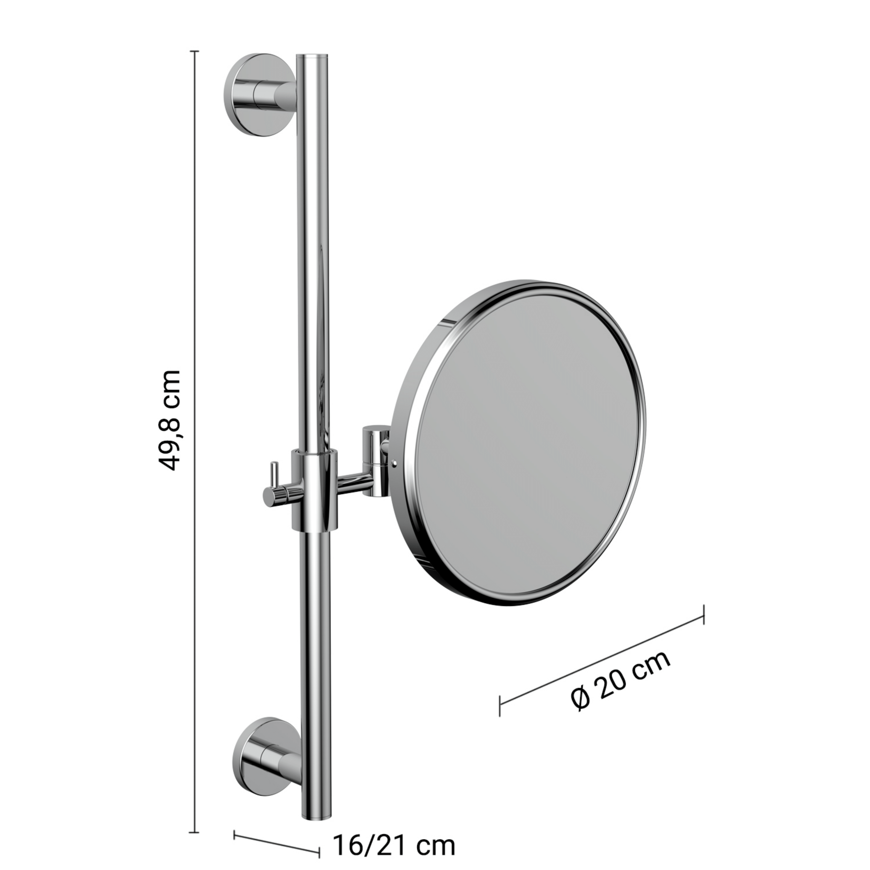 Specchio ingranditore scorrevole da parete con fattore di ingrandimento 3x, progettato per offrire praticità e precisione nelle routine quotidiane. Il meccanismo scorrevole permette di avvicinare o allontanare lo specchio con facilità, garantendo un utilizzo confortevole e una regolazione fluida dello spazio di lavoro.