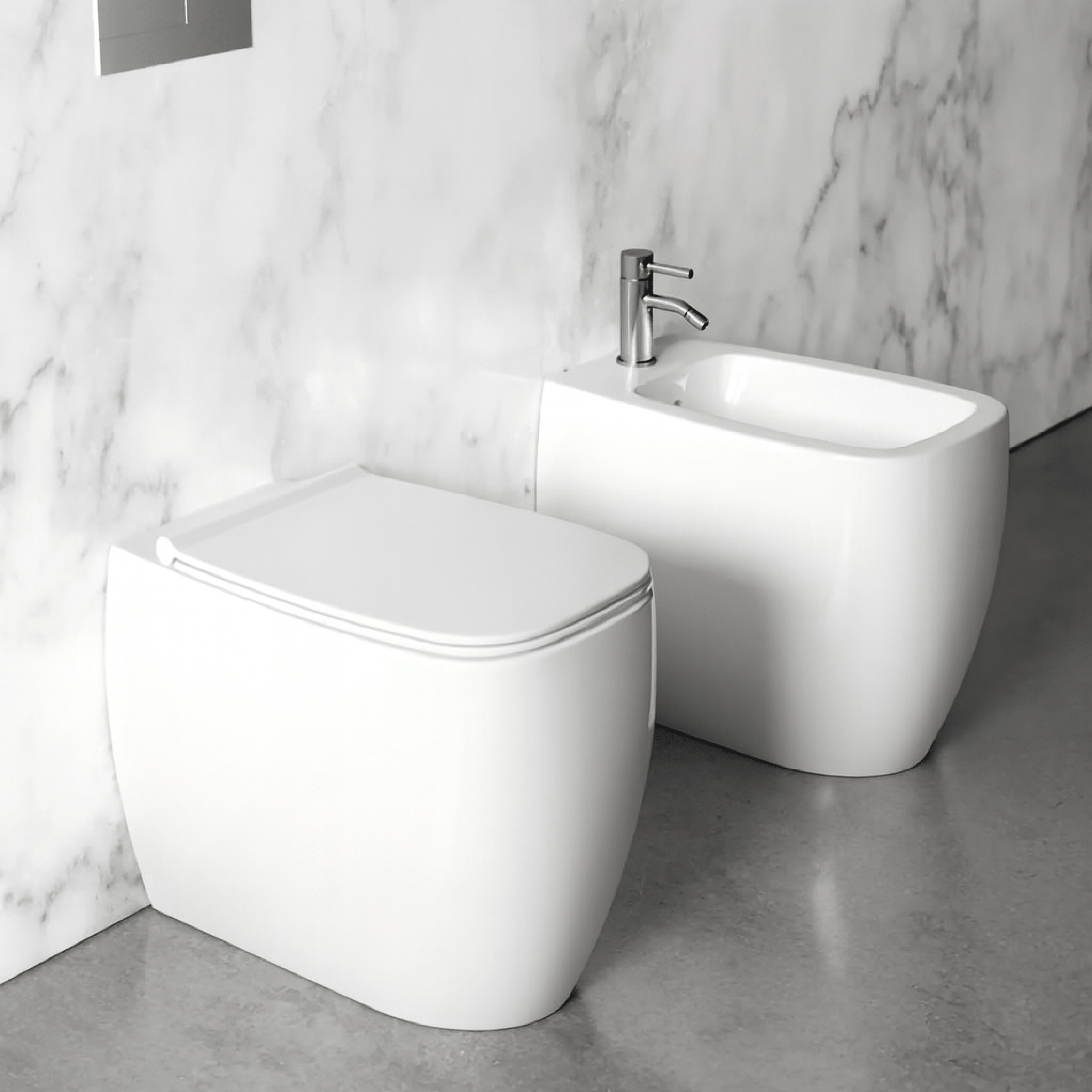 Coppia Di Sanitari a Terra Senza Brida Traslato Alice Ceramica "Nur" Bianco Lucido