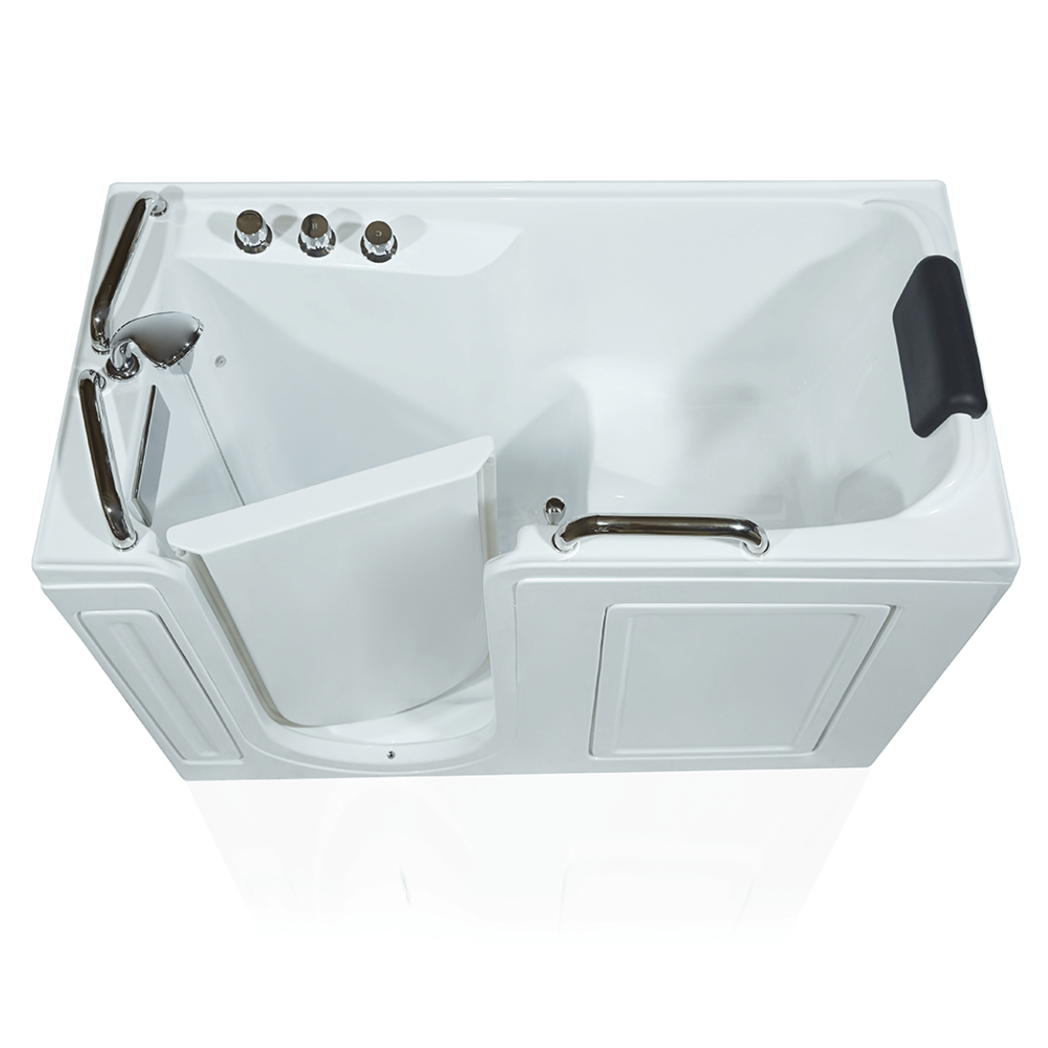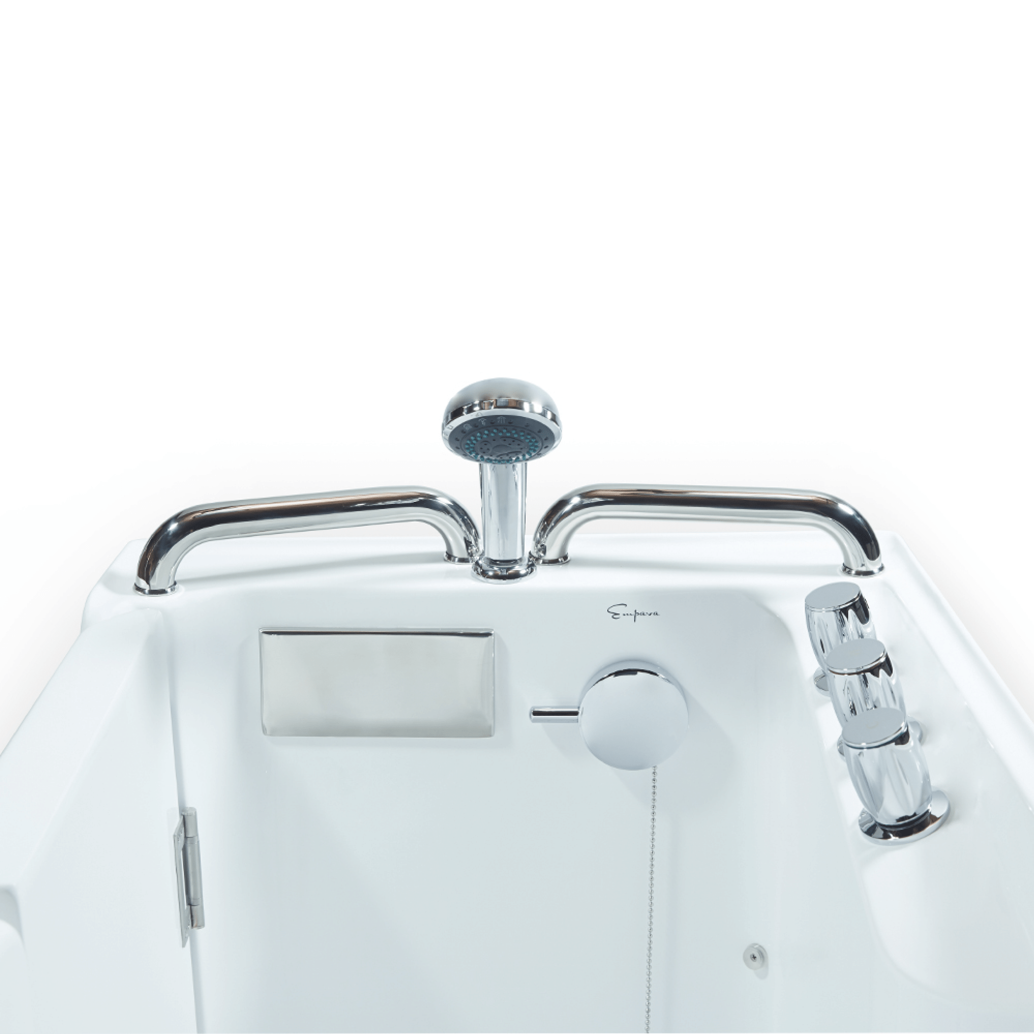 La vasca con lo sportello è il sanitario adatto agli anziani oppure per le persone con disabilità, ma anche per chiunque abbia un problema motorio. La vasca ha un'apertura dello sportello verso sinistra, scompiglia anche di redita antiscivolo, cuscino poggiatesta e due maniglioni di sostegno agevolando la facilitazione dell'entrata e dell'uscita dalla vasca. Inclusa anche la rubinetteria in finitura cromata con doccetta . La capacità massima dell'acqua è di 355 litri, con altezza scalino ingresso da 10 cm mentre l'altezza della seduta è da 45 cm.