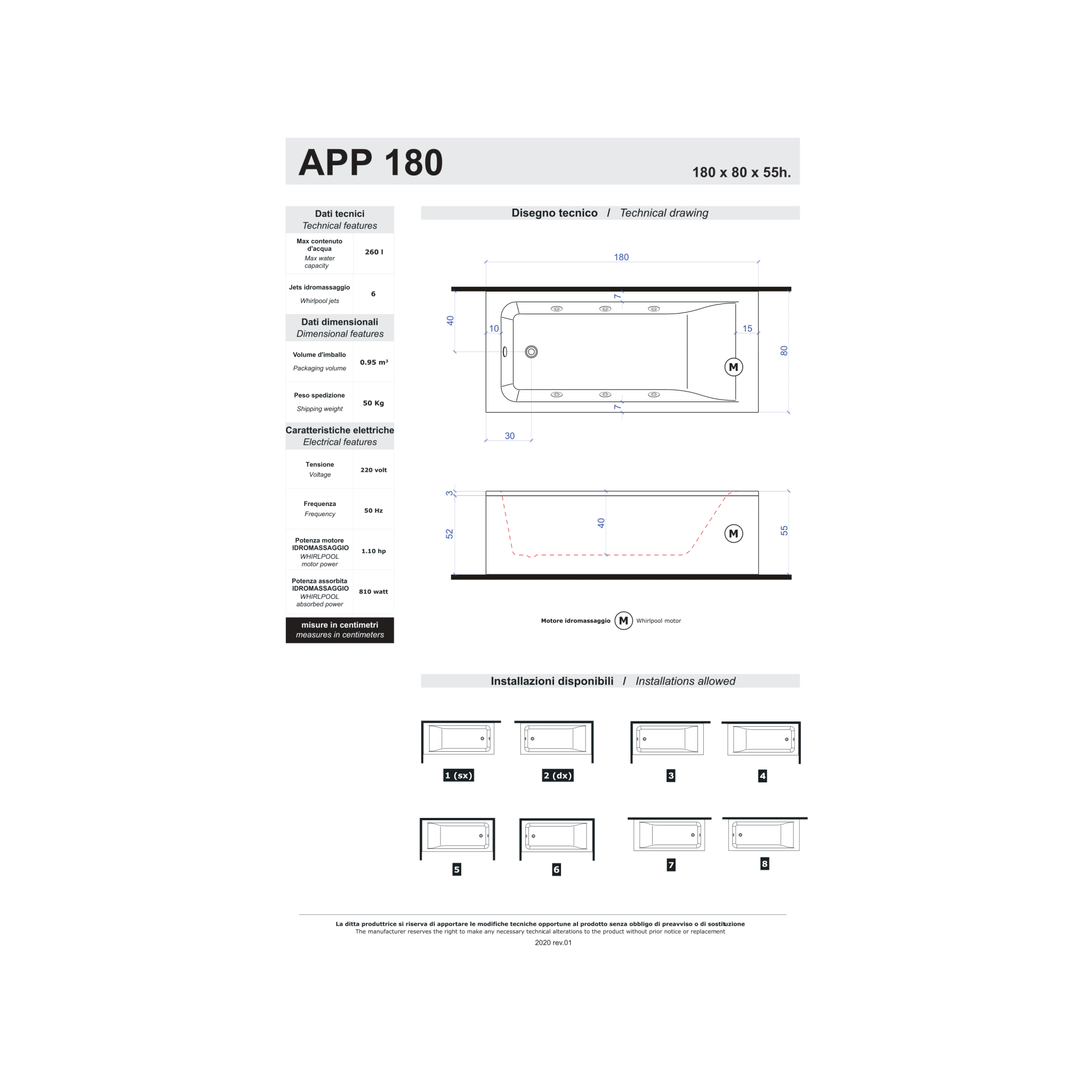 Vasca Rettangolare Con Pannello Frontale e 1 Pannello Laterale 180x80 Gruppo Tre S "App" Bianco Lucido