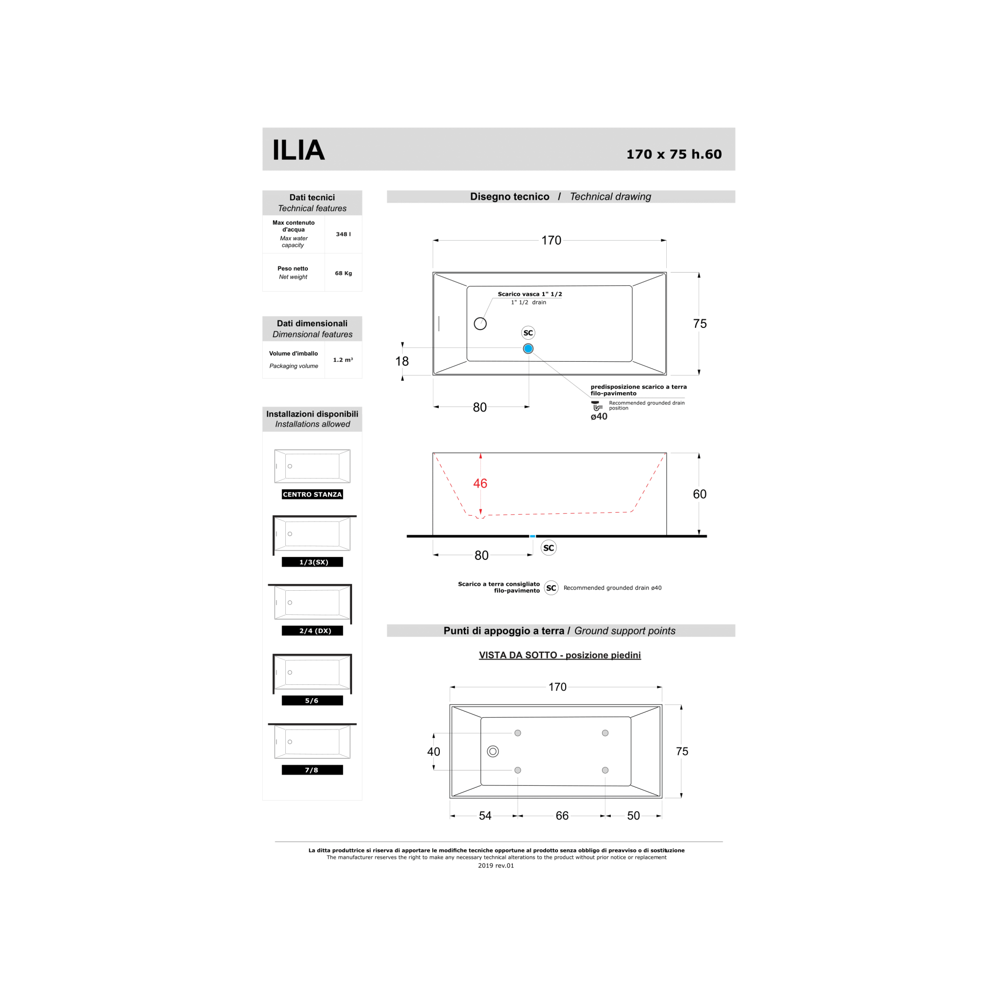 - Colonna di scarico inclusa