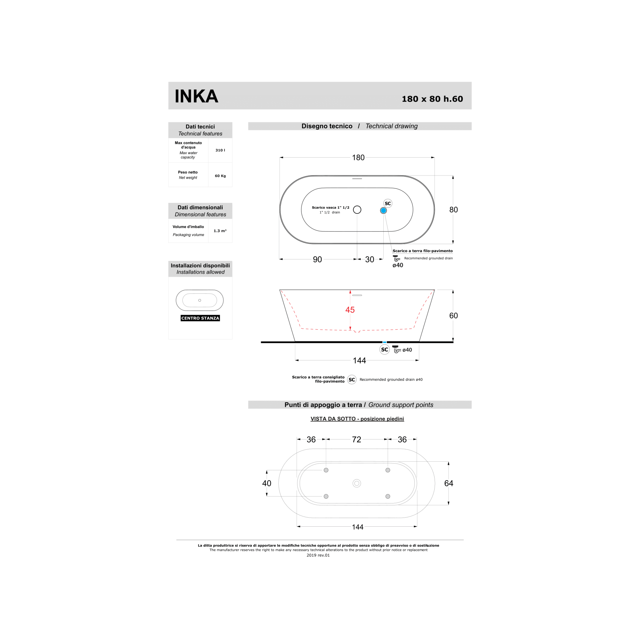 - Tipologia prodotto: Vasca freestanding