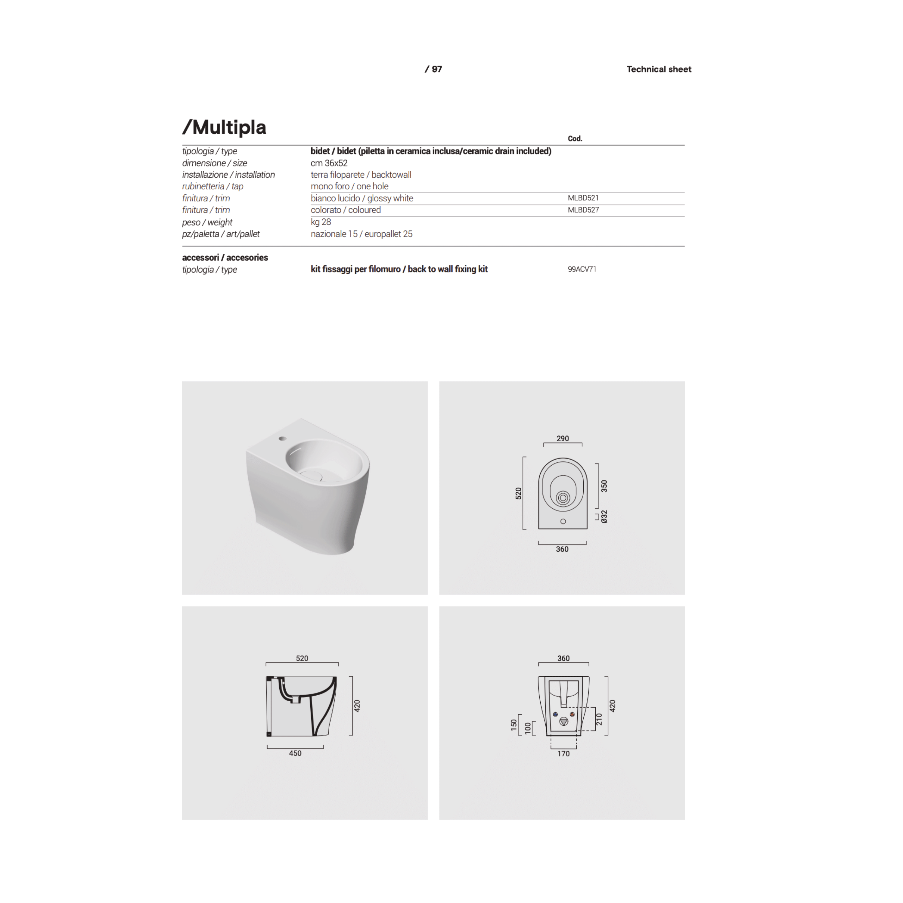 - Tipologia prodotto: Bidet a terra