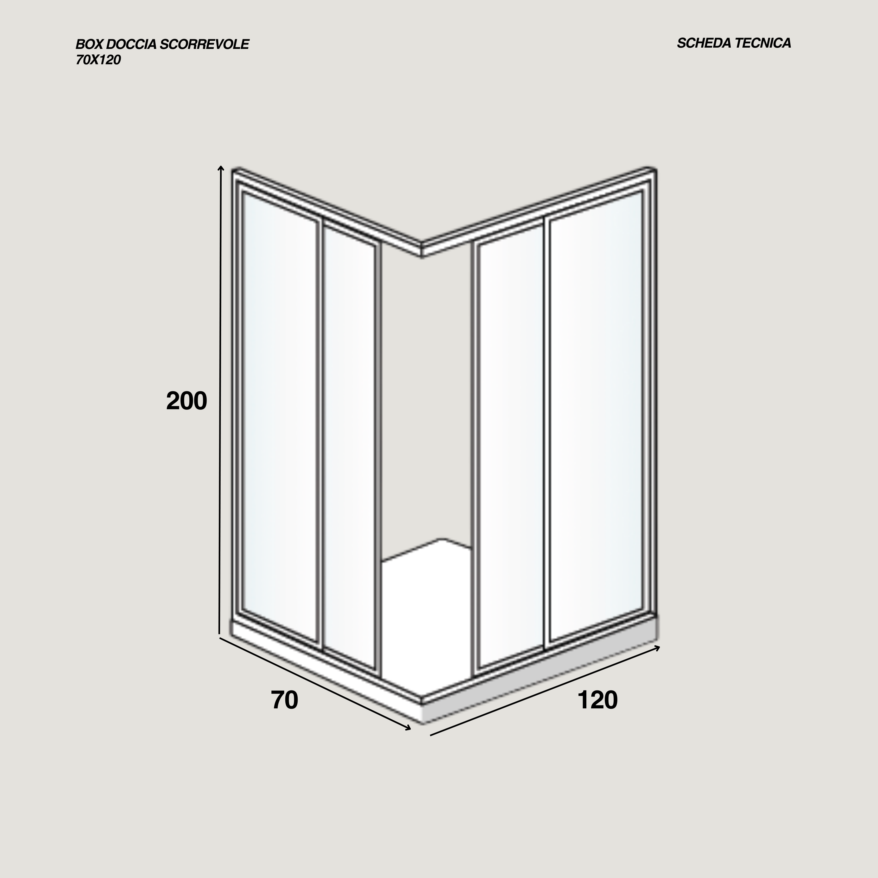 Il box doccia angolare scorrevole da 70×120 cm, con un’estensibilità compresa tra 67,5 e 69,5 cm per un lato e 117,5 e 119,5 cm per l’altro, offre un’apertura utile di 56 cm grazie allo scorrimento simmetrico delle ante verso i profili laterali. Il cristallo è extra‑trasparente, ottenuto eliminando fino al 90% dell’ossido di ferro e utilizzando silice più pura, una tecnologia che garantisce una trasparenza superiore, una luminosità più intensa e una resa estetica che non altera i colori circostanti, valorizzando al massimo i rivestimenti. I profili sono realizzati in alluminio con finitura argento lucido, una scelta che conferisce brillantezza, pulizia visiva e un carattere contemporaneo all’intera struttura. Il cristallo ha uno spessore di 6 mm, assicurando stabilità e sicurezza senza appesantire l’estetica. Il box è completamente reversibile, permettendo di scegliere il verso di apertura in fase di installazione, mentre le maniglie integrate sono dotate di chiusura magnetica che garantisce una tenuta precisa e un utilizzo confortevole.