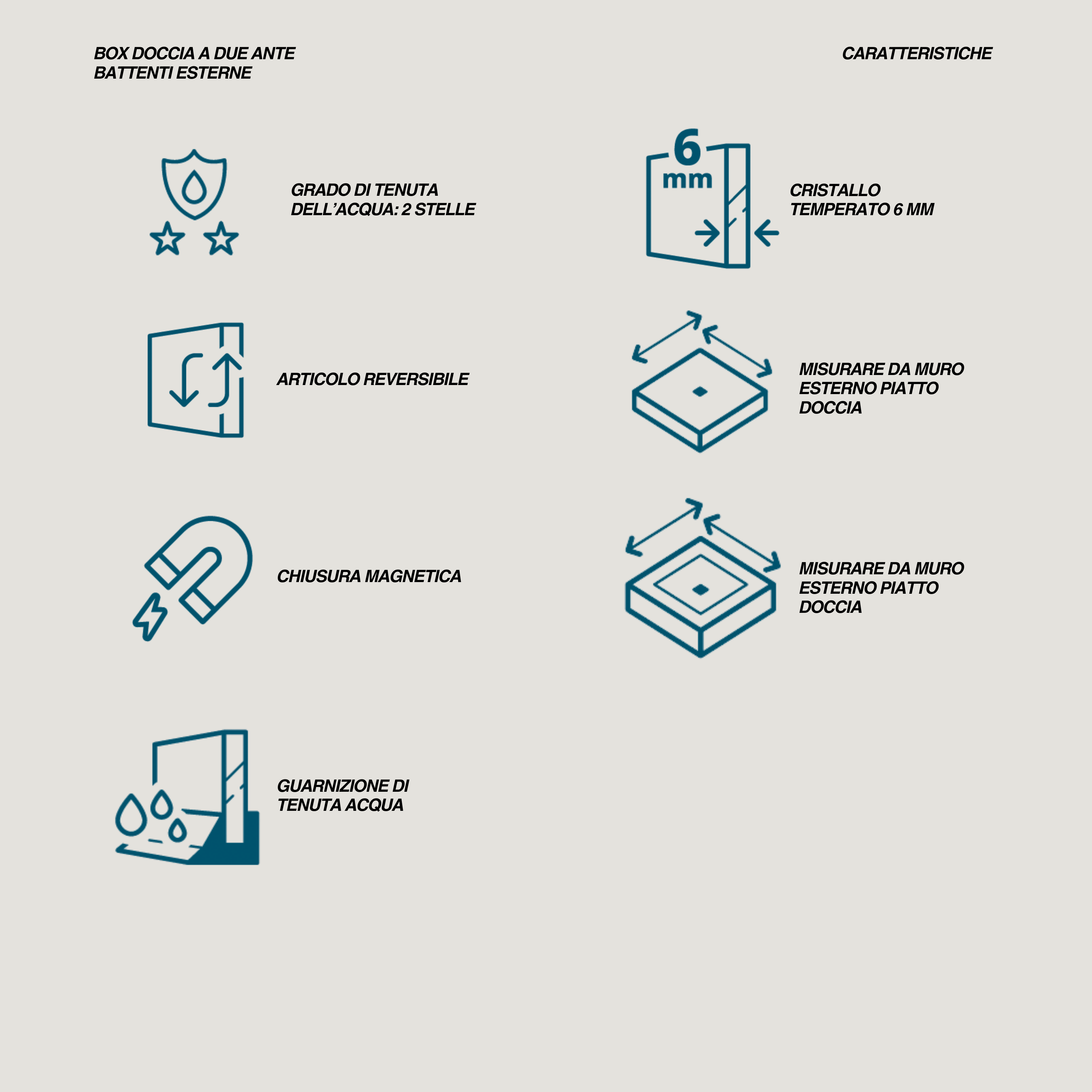 - Tipologia prodotto: Box doccia battente doppia porta