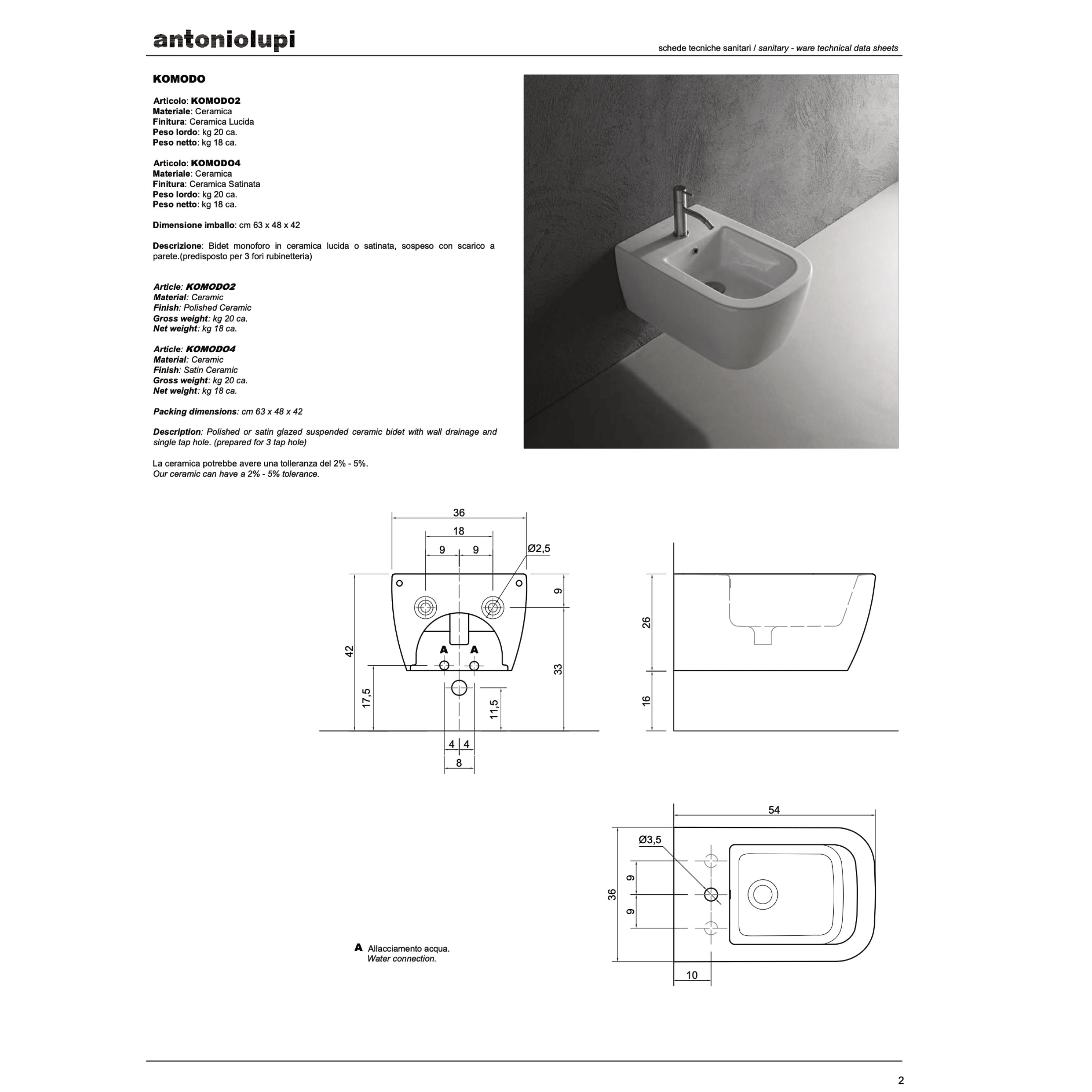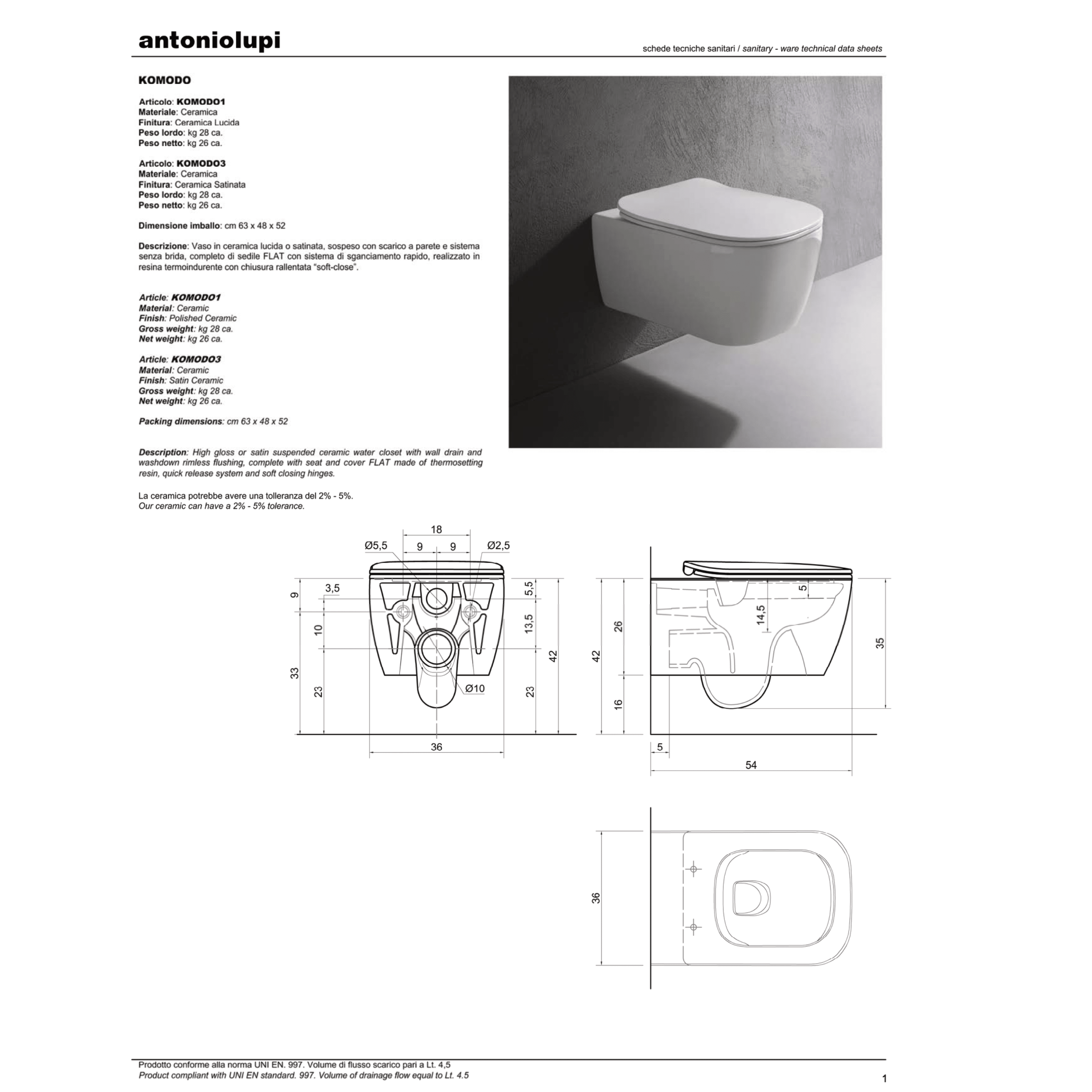 Coppia Di Sanitari Sospesi Senza Brida "Komodo" Bianco Lucido