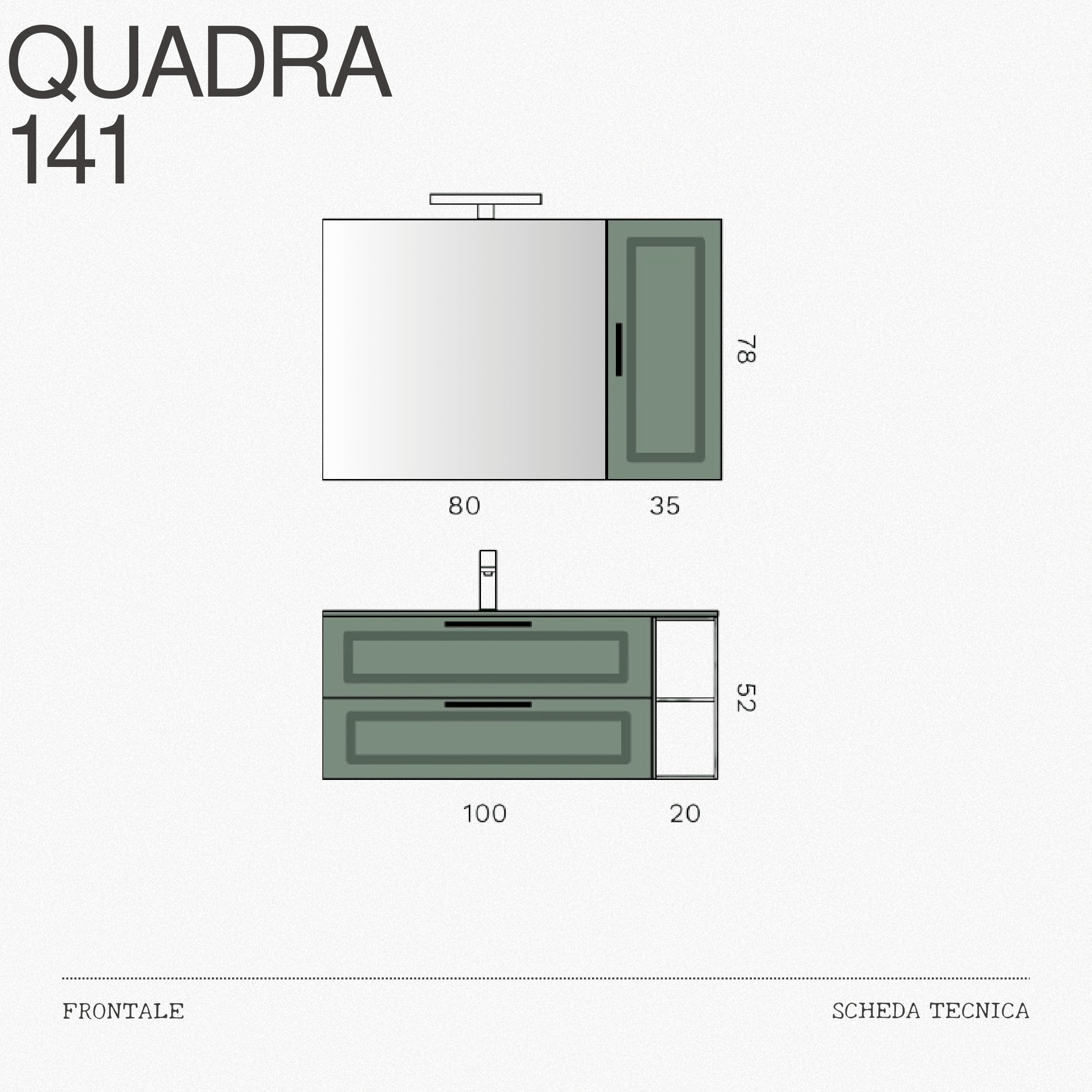 Il mobile bagno incarna l’equilibrio perfetto tra design minimale e funzionalità evoluta. La base sospesa, in raffinato verde salvia, si distingue per le sue linee pulite e la doppia cassettiera con maniglie integrate, pensata per offrire ampio spazio contenitivo senza rinunciare all’estetica. Il lavabo realizzato in vetro finitura verde salvia crea un unificazione moderna valorizzando la composizione e offrendo resistenza e praticità quotidiana.A destra, il vano a giorno aggiunge un tocco decorativo e funzionale, ideale per riporre asciugamani o oggetti d’arredo. Il grande specchio abbinato alla lampada LED superiore, garantisce una luce uniforme e naturale, perfetta per la routine quotidiana. Completa la composizione il pensile coordinato, che riprende la stessa finitura e geometria, offrendo ulteriore spazio e coerenza stilistica.