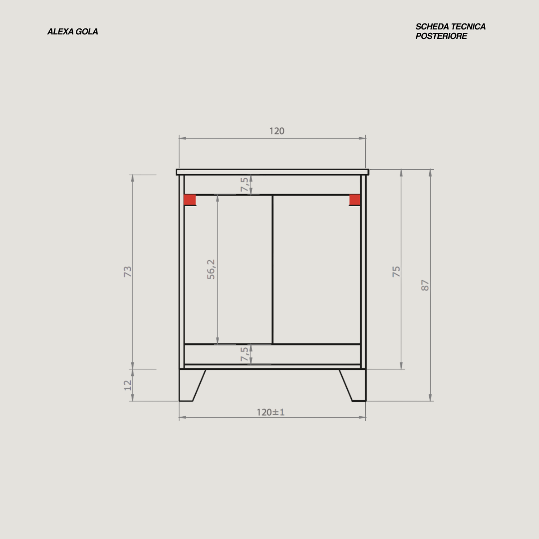 • Misure base: L 120 x P 46 x H 82 (cm)