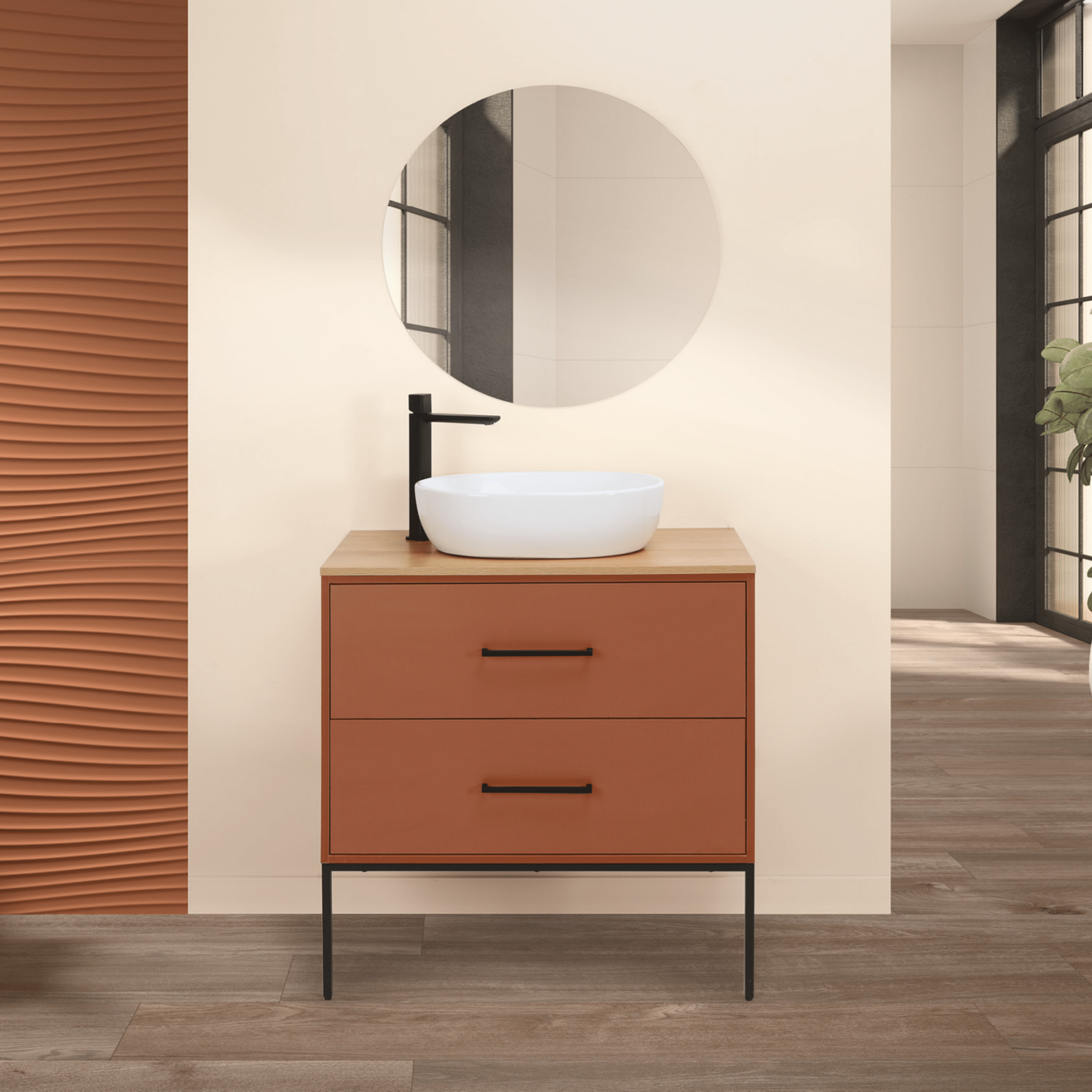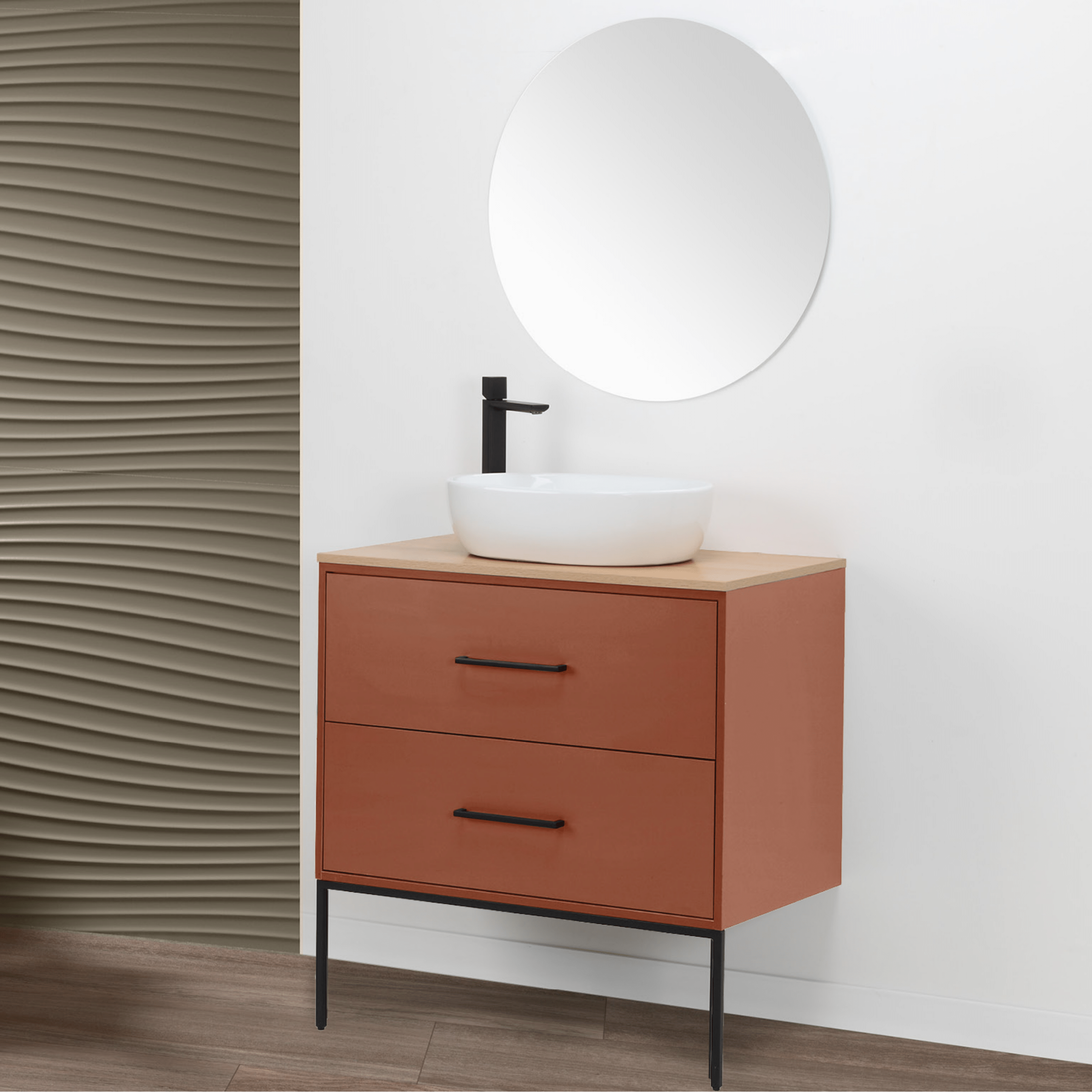 Mobile Bagno a Terra 80 Cm Due Cassetti Specchio Tondo Diametro 60 Cm Feridras "Venus" Terracotta