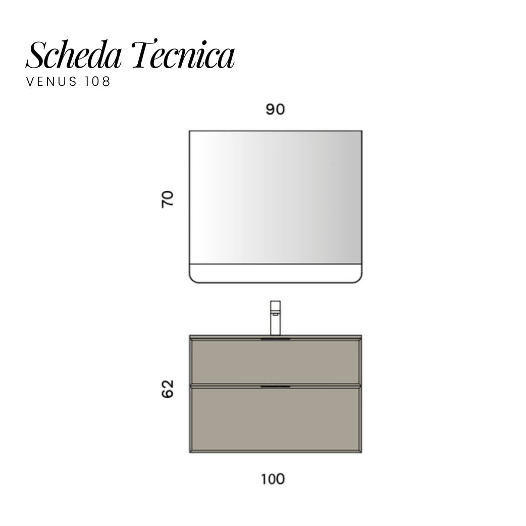 Mobile Bagno Sospeso 100 Cm Due Cassetti Specchio Con Lampada Led 90x70 Cm ItalBagno "Venus 108"