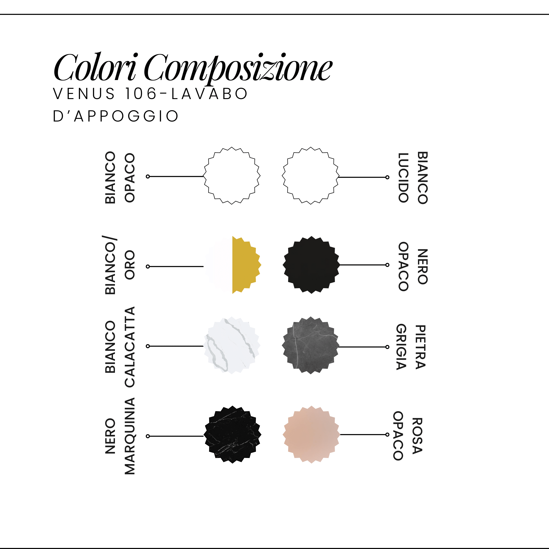 E' possibile cambiare le finiture del top, vi basterà consultare la cartella colori nei contenuti multimediali. Al momento dell'ordine specificare nelle note il colore scelto da voi.