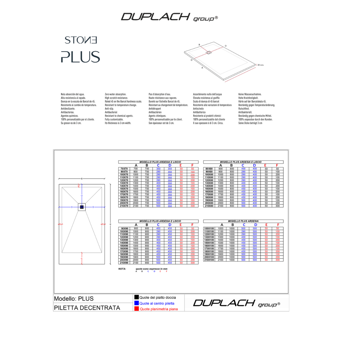 Piatto Doccia 70x70 Effetto Pietra Duplach "Plus" Grigio