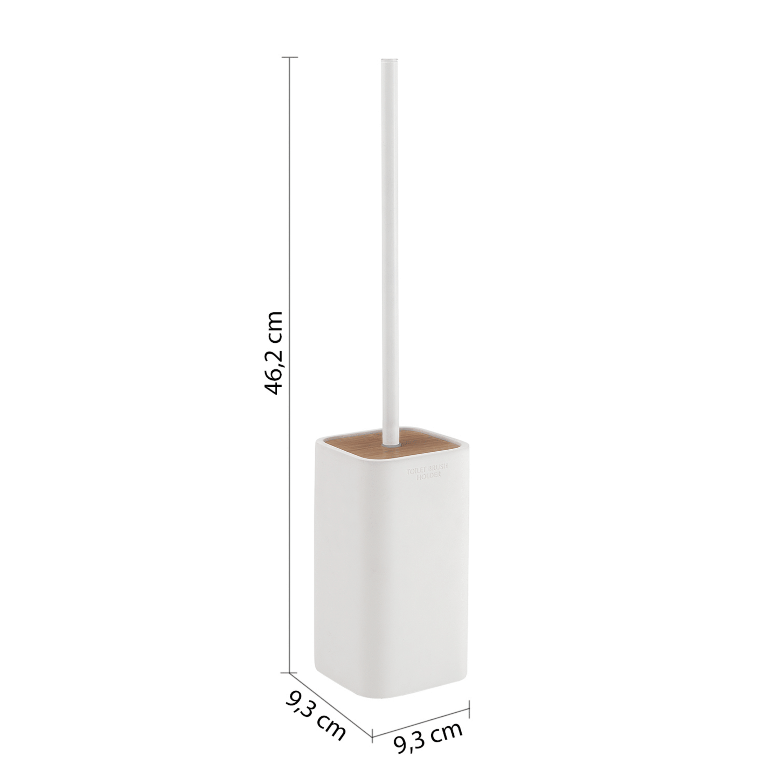 Portascopino realizzato in resina e bambù finitura bianco utile per il tuo arredo bagno,rendendolo ancora più moderno. Il prodotto è composto con materiali sostenibili all'ambiente.