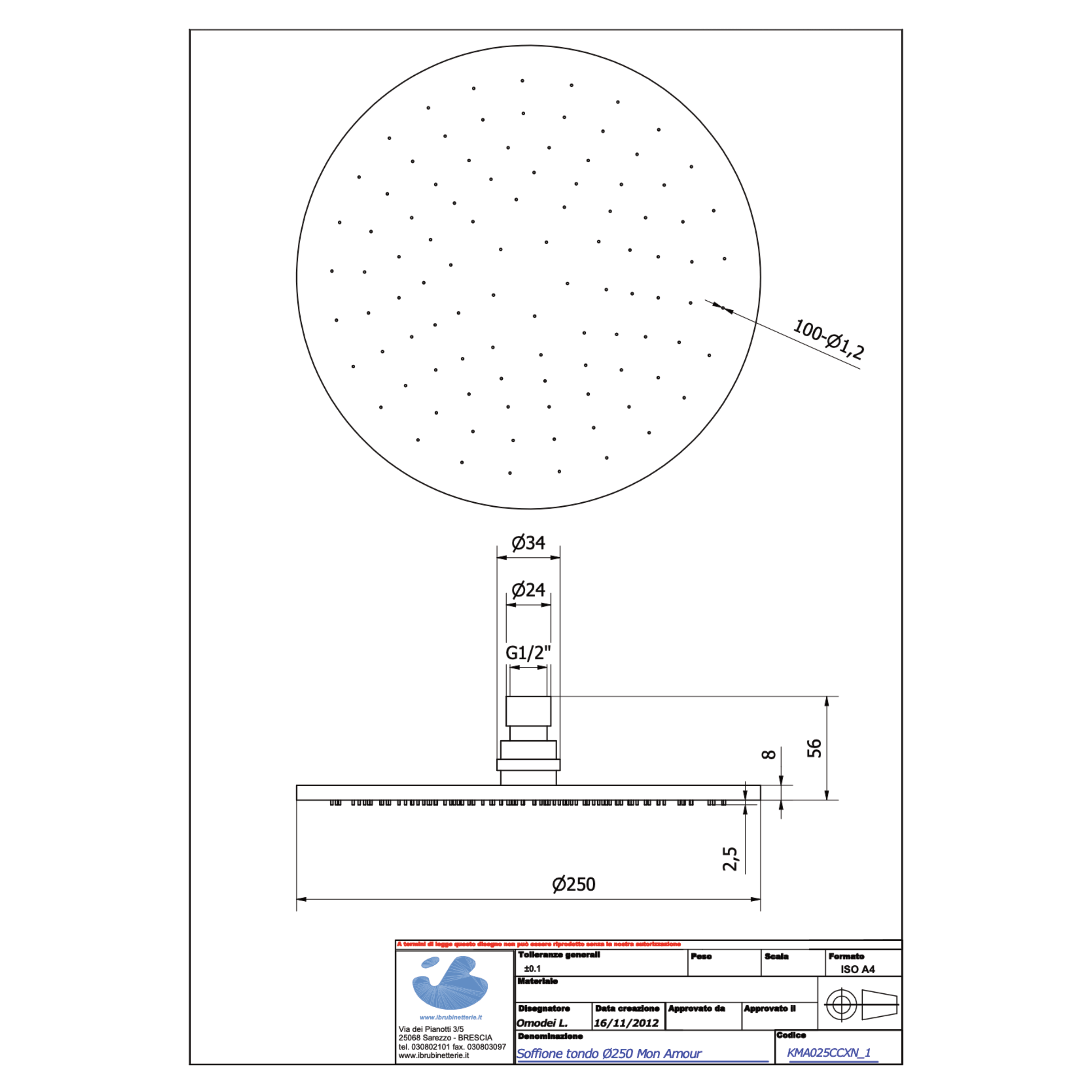 - Misure soffione: Diam.25 (cm)