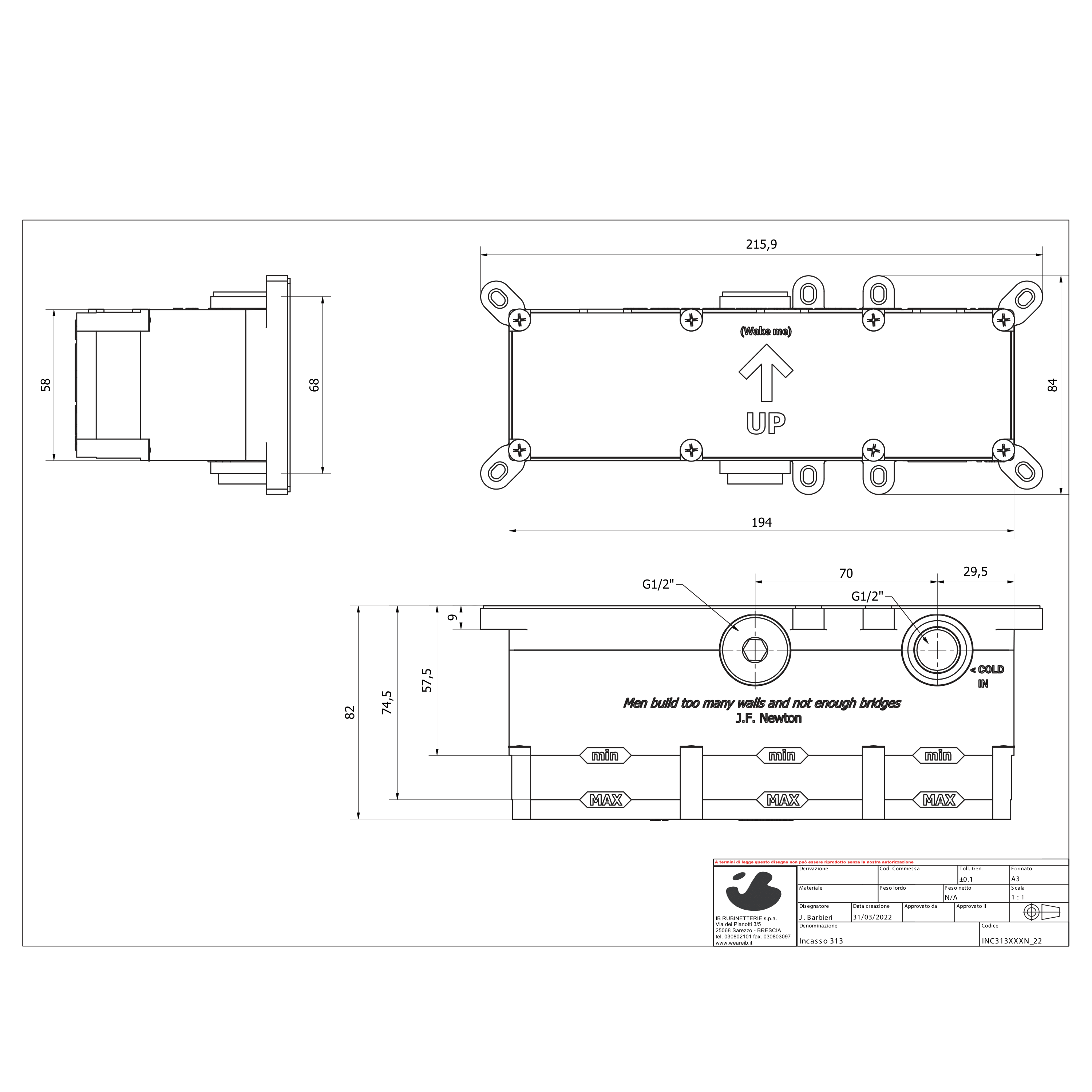 - Materiale prodotto: Acciaio Inox Aisi 316