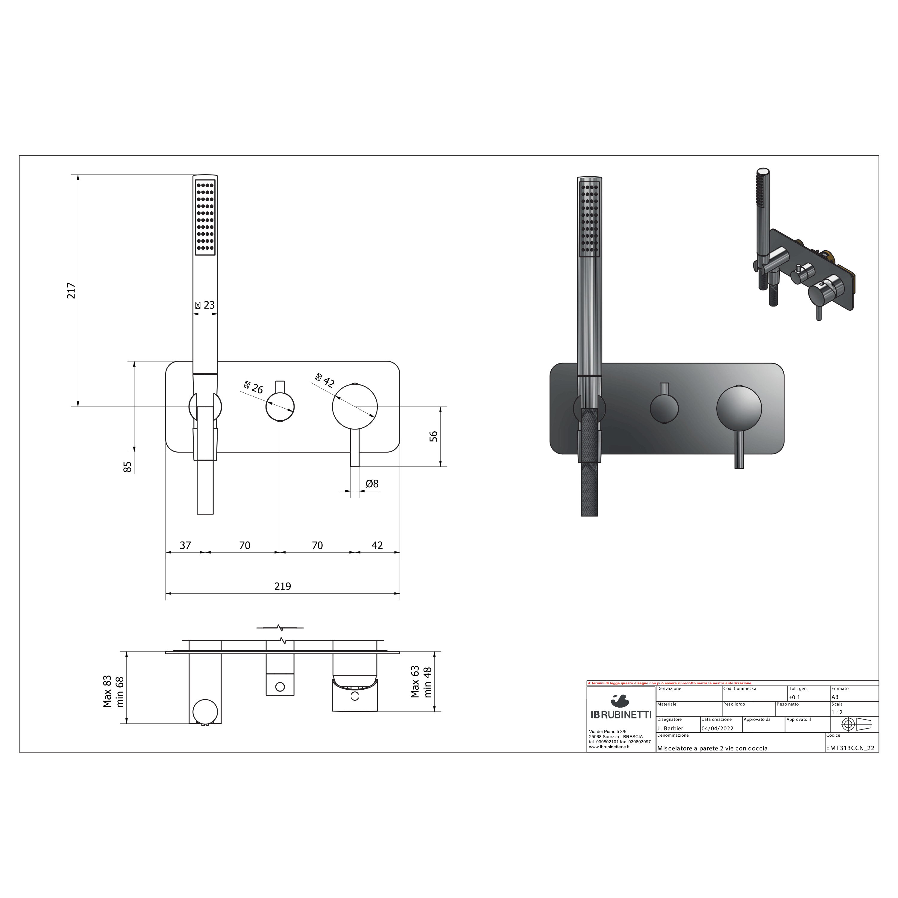 - Miscelatore doccia a 2 vie con kit doccetta
