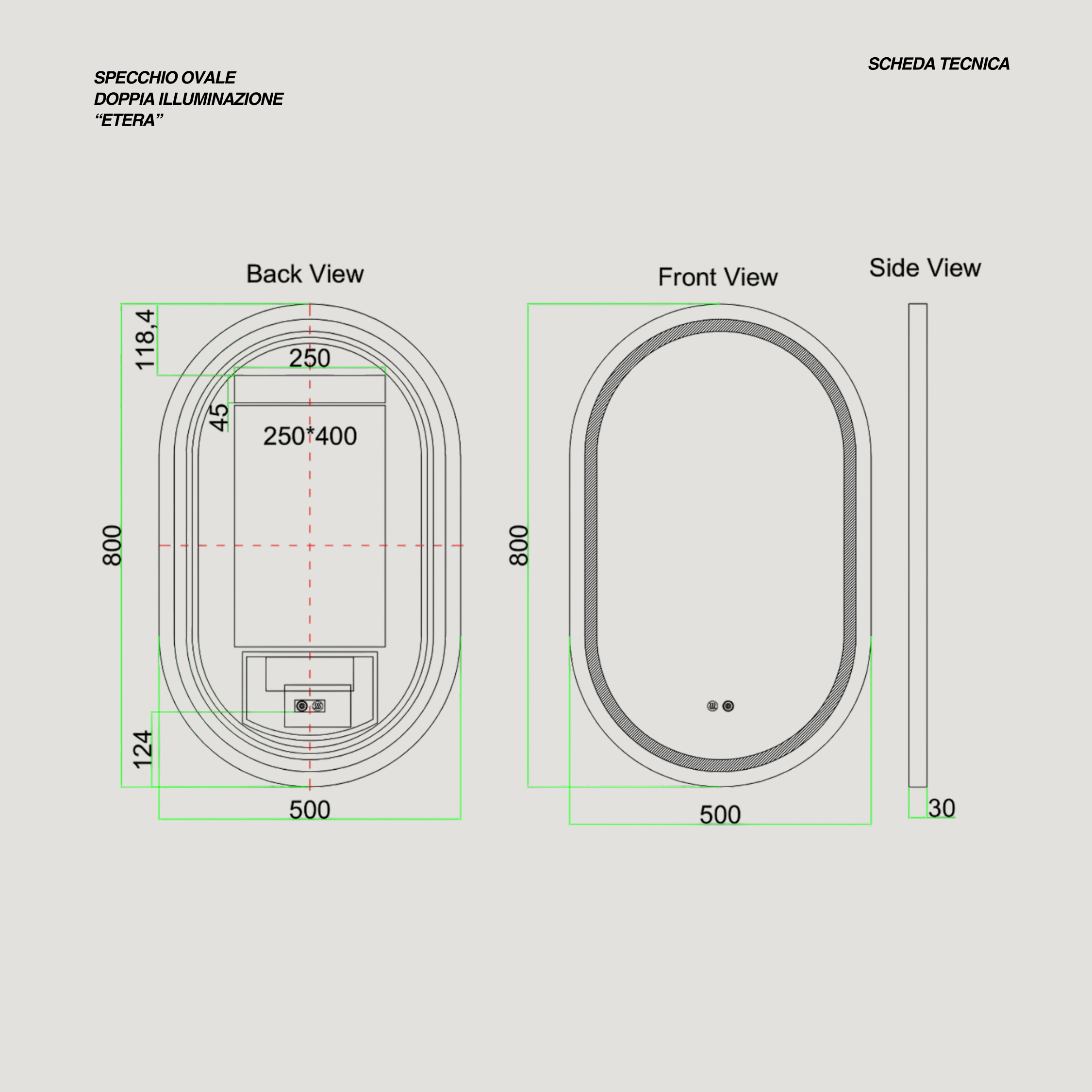 • Tipologia prodotto: Specchio ovale doppia illuminazione