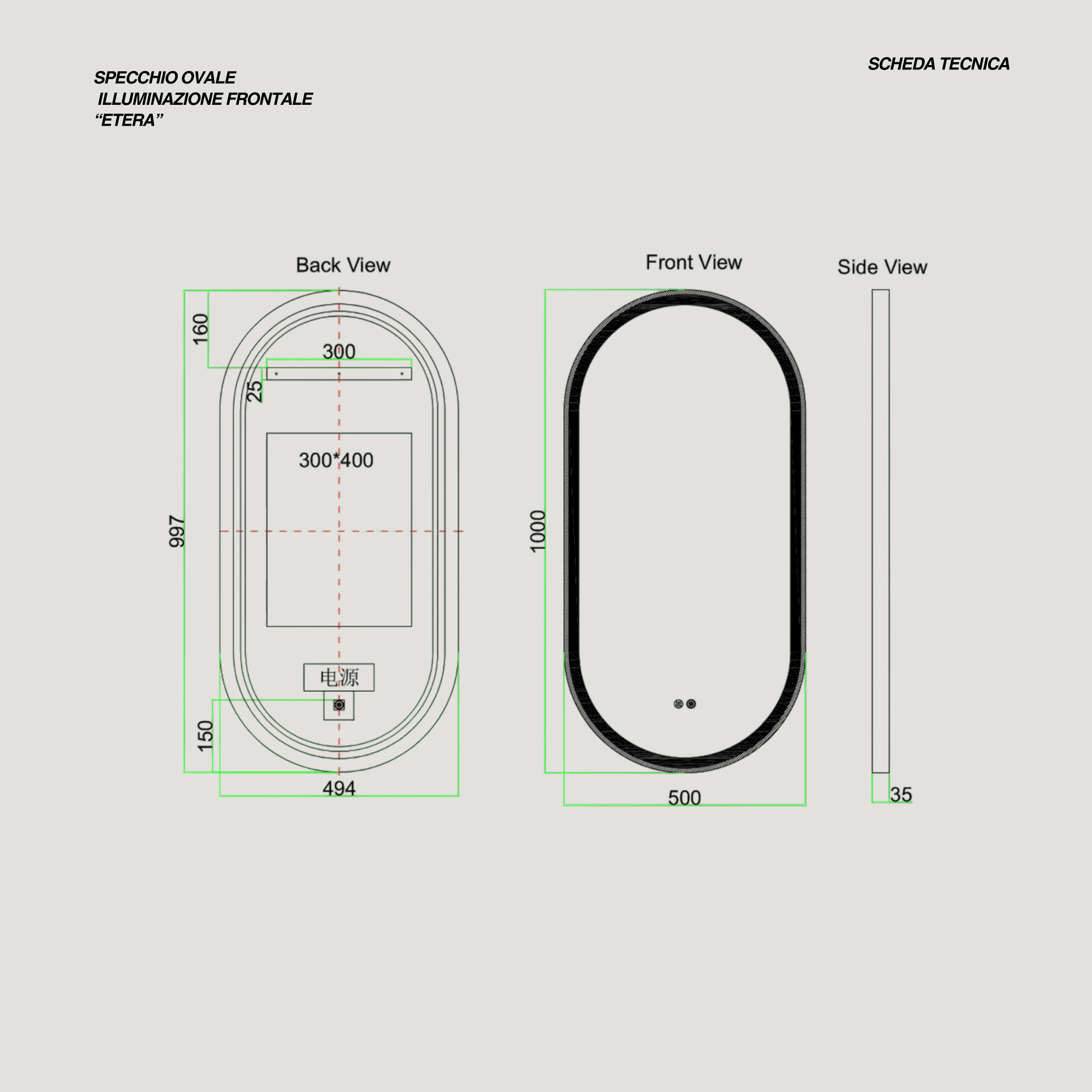 Lo specchio ovale da 50x100 cm è un complemento d’arredo che unisce eleganza e funzionalità, pensato per trasformare l’ambiente bagno in uno spazio raffinato e tecnologico. La cornice in acciaio con finitura spazzolato conferisce un carattere prezioso e contemporaneo, capace di dialogare con diversi stili di arredamento. L’illuminazione LED frontale integrata garantisce una luce uniforme e regolabile, con la possibilità di variare la temperatura colore da 2700K a 6500K, passando da tonalità calde e avvolgenti a tonalità fredde e brillanti, ideali per le attività quotidiane che richiedono precisione.La tecnologia si esprime anche attraverso funzioni intelligenti come l’interruttore a sensore, che permette di accendere e spegnere la luce con un semplice gesto, e il sistema antifog automatico, che mantiene la superficie sempre nitida anche dopo una doccia calda. La protezione IP44 dello specchio assicura resistenza agli spruzzi d’acqua provenienti da tutte le direzioni, rendendolo perfetto per ambienti umidi, mentre i LED integrati, certificati IP65, offrono una protezione superiore contro polvere e getti d’acqua, garantendo affidabilità e durata nel tempo.