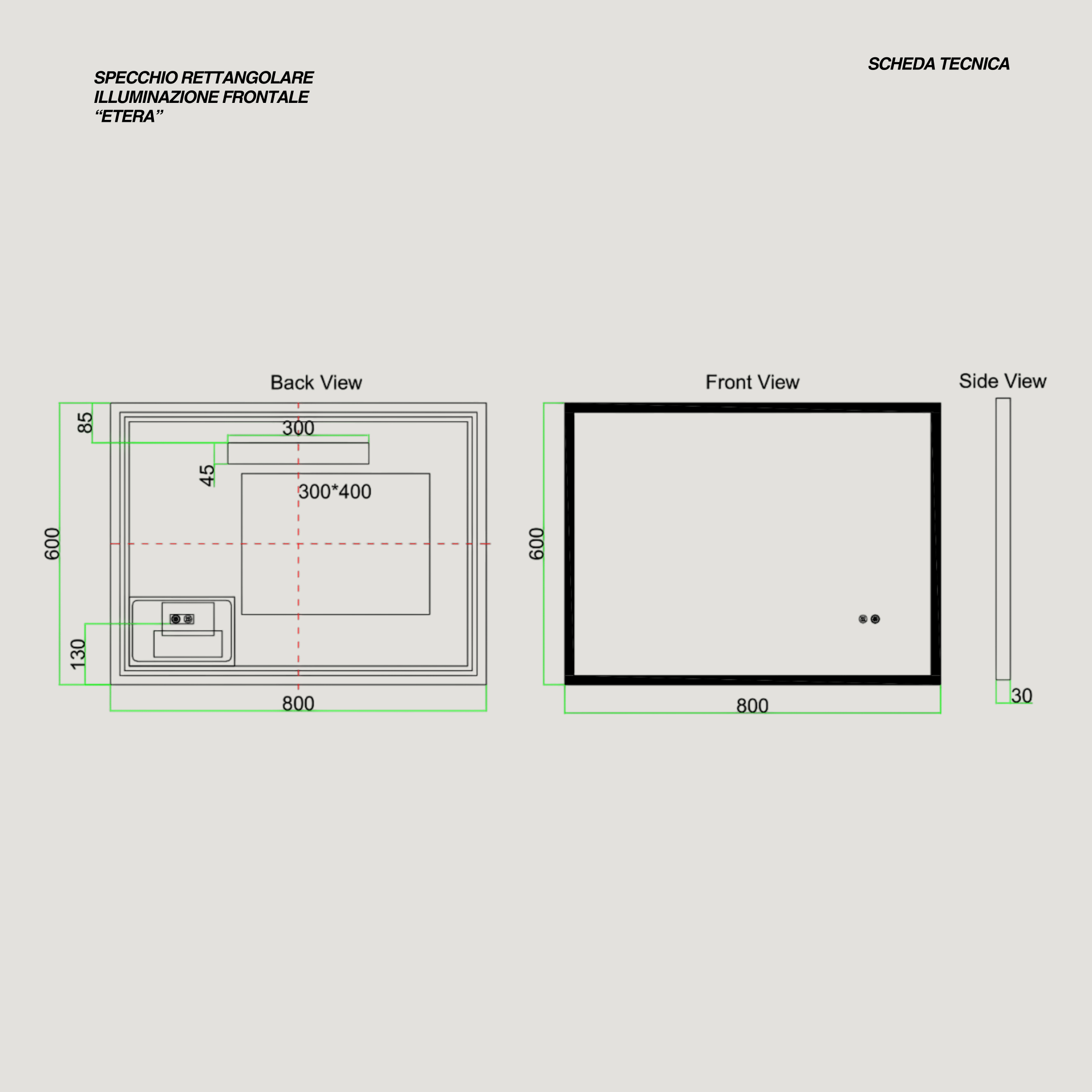 - Tipologia prodotto: Specchio rettangolare