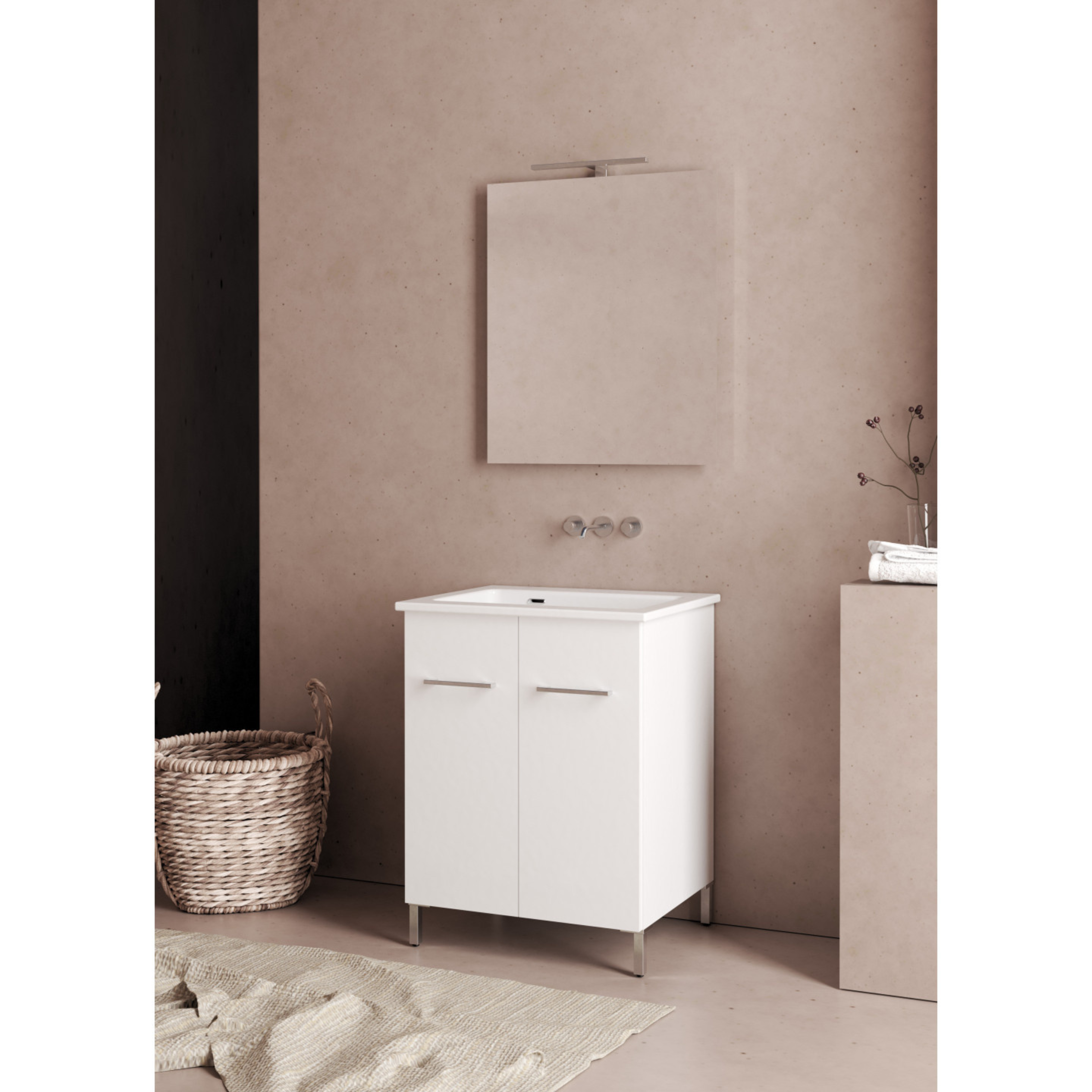 Lavatoio a Terra 60x50 Due Ante Vasca Xilon "Nanco" Bianco Opaco/Bianco Lucido